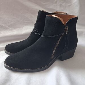 Step out in style with these chic black suede ankle boots. Perfect for any occasion, they offer both comfort and elegance.