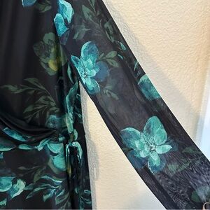 Floral dress green blue black dress office dressy semi-formal dress bright spring summer quiet luxury dillards macys good quality