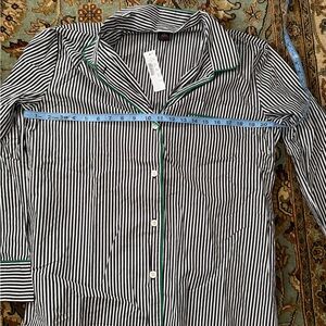 NWT J. Crew Black and White Striped Pajama Set with Green Accents
