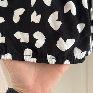 Chic and stylish women's top featuring a playful black and white heart print. Perfect for casual outings or a day at the office. Worn and washed once. Smoke free and pet free home. Bundle and save! Would look cute with white pants and heels!