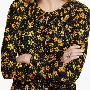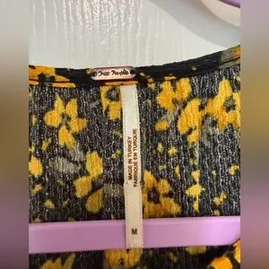 Stunning Free People Tiers of Joy long sleeve prairie maxi dress in a beautiful black and yellow floral print. Features a flattering tiered silhouette with a soft, flowy fit that gives effortless boho and romantic vibes. Perfect for fall, layering, brunch, festivals, cottagecore aesthetic, or everyday wear.