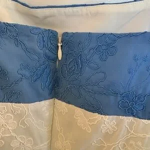 The Gianni Bini x Shea Leigh Mills Blue Color Block Nautical Midi Dress is a stylish and versatile piece perfect for a variety of occasions. This sleeveless dress features a square neckline and a zip closure for easy wear. The color block pattern and embroidered accents add a touch of sophistication, while the A-line silhouette and midi length make it suitable for both casual and formal events. Made from 100% polyester, this dress is easy to care for with a dry clean only requirement. Perfect for summer, fall, and spring, this dress is a must-have for any fashion-forward woman's wardrobe.