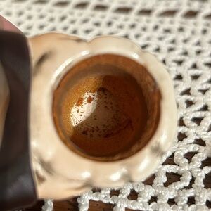 ABOUT: This little guy is an authentic Goebel kitchen timer from the vast and enduring Friar Tuck series. He is totally complete with a manufacturer stamp on the bottom and the year of manufacture engraved (i.e. 1959). The well, his skin, his waistband, and his shoes are all glazed. The robe is cold-painted. He comes with a ~5-minute 'hourglass' style timer filled with pink sand.