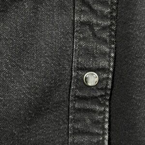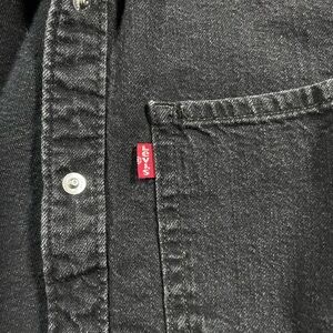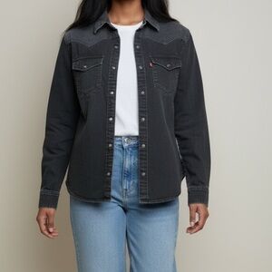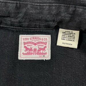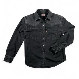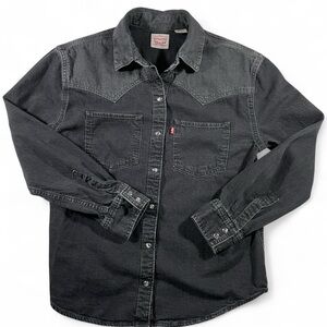Levi’s two-tone black denim snap shirt in size XS.