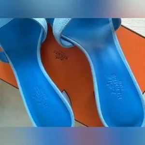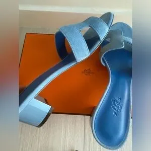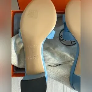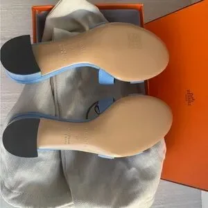 Hermes Bleu Cameo Oasis Sandals Velvet Goat size 37