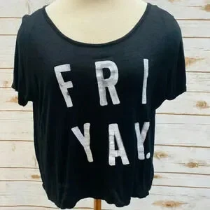 BETHANY MOTA Women Short Sleep Pull Over Scoop Neck "FRIDAY Black Top