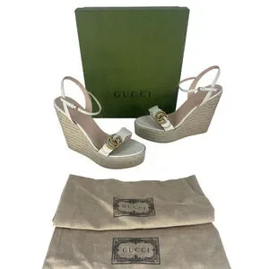 Gucci Aitana Marmont GG Leather Platform Espadrille Wedge Sandals 41