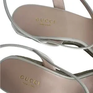 Calf leather upper. Leather lining. Jute wedge trim. Leather insole. Rubber sole. Buckle ankle strap closure. Interlocking GG hardware. Made in Italy.