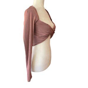 Saints + Secrets Twist Front Pleated Long Sleeve Cropped Top SZ M Pink Blush