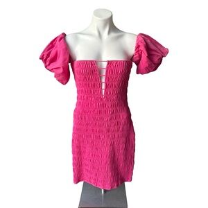Seven Wonders Off The Shoulder Pink Smocked Cotton Mini Dress, Sz 8