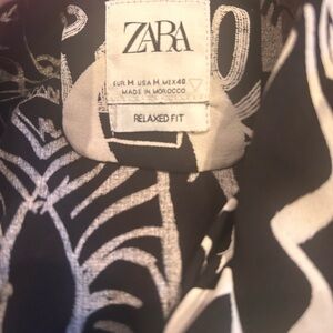 Men's Zara Black/White button up graffiti Printed Shirt lightweight relaxed fit