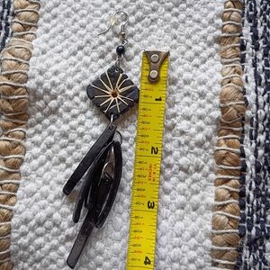Elegant black and gold dangle earrings perfect for any occasion. Add a touch of sophistication to your outfit.