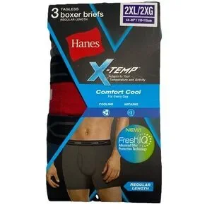 Hanes 3 Pack Men’s Comfort Cool Tag less Boxer Briefs Regular Length 2XL