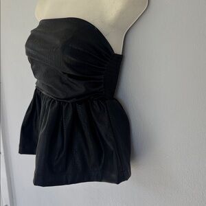 Lucky Brand black faux vegan leather ruched top stretchy smocked elastic fit peplum hem strapless tube top size XS. Brand new never worn!