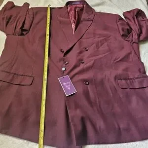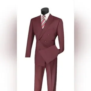 VINCI Men's Burgundy Double Breasted 6 Button Classic Fit Suit NEW