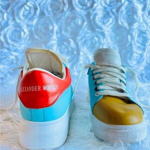 Alexander McQueen shoes, particularly their signature Oversized Sneakers, are a blend of luxury, comfort, and avant-garde style, featuring thick rubber soles, premium calfskin leather, and distinctive, chunky silhouettes. Made in Italy, they are known for durability and a bold, fashion-forward look. They run slightly large