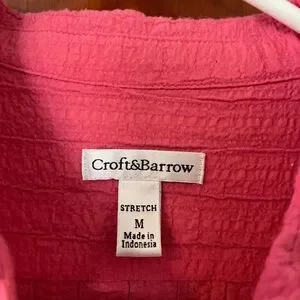 Chic pink button-down shirt by Croft & Barrow. Features textured fabric and classic collar. Ideal for versatile styling.