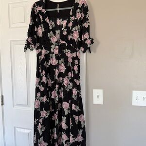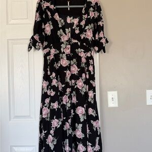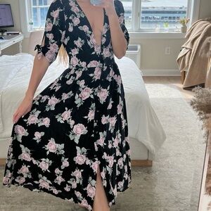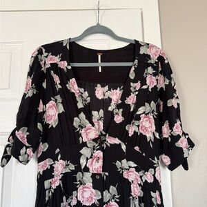 Free People Floral Button Down Midi Maxi Dress Flowy Boho Summer