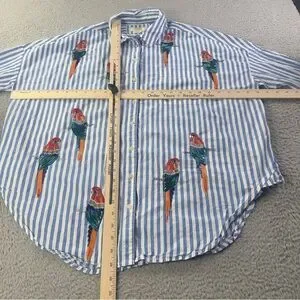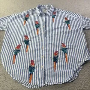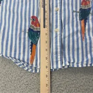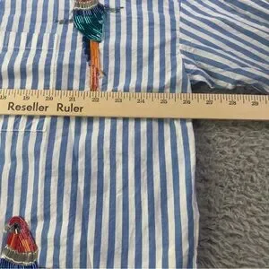 Maeve Parrot Button Down Shirt Womens XS / S Blue White Striped Sequin Oversized