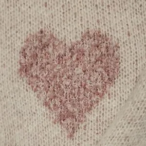 Charming sweater cardigan with pink heart design. Soft and cozy for any occasion. 30 inches from top to bottom.