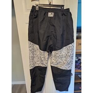 The Nike Serena Williams Design Crew Pants in size XL are a stylish and comfortable option for women looking for activewear. These black trousers feature a drawstring closure, elastic waist, and pockets for added convenience. With a relaxed fit and woven fabric type, these pants are perfect for sportswear activities in the winter and spring seasons, making them a versatile addition to any modern woman's wardrobe.