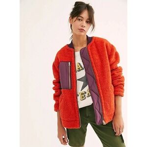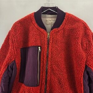 We The Free People Rivington Red Purple Sherpa Fleece Bomber Jacket Womens Small