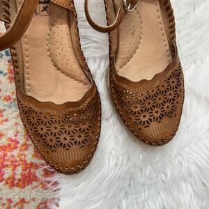 $200 Pikolinos Vila Wedge Sandal in Brandy 36 / 5.5-6 Brown Leather Espadrille