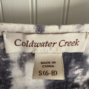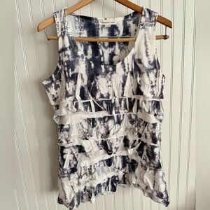 Coldwater Creek Top size 6 with eyecatching tie-dye pattern with playful ruffles. Sleeveless design for warm days. Good used condition.