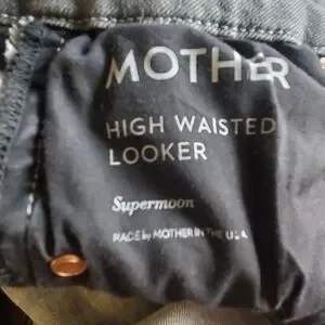 MOTHER HIGH WAISTED LOOKER . SKINNY LEG. SZ 25. STRETCH GREY. RAW HEM.