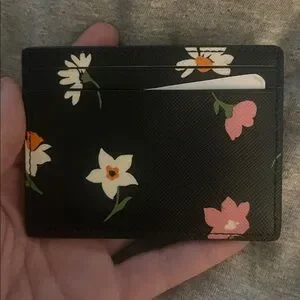 Kate Spade Black Card Holder with Floral Accents