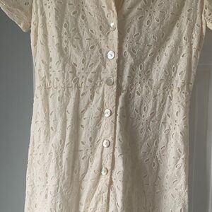 Chic cream dress with eyelet details. Ideal for stylish occasions.