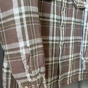 Cozy thick brown plaid quilted jacket by St. John's Bay. Ideal for layering.