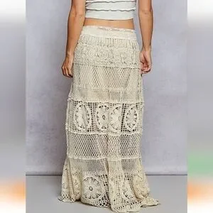 This elegant cream crochet maxi skirt is perfect for any occasion. Its intricate design adds a touch of sophistication to your wardrobe.