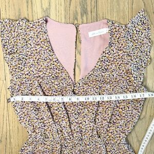 All In Favor Women’s Floral Flutter Sleeve Hi Low Ruffle Hem Lined Dress Size S