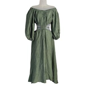 ASTR the Label Cassian Dress Woman’s Sz S Sage Green Midi Cut Out Off Shoulder