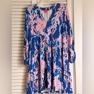 Women’s Lilly Pulitzer Blue and Pink Patterned V-neck Dress