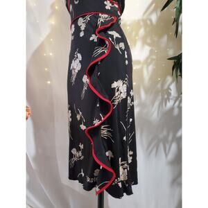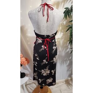 Vtg Y2K Charlotte Russe Asian Floral Ruffle Halter Slip Dress Size M Whimsigoth Black White Red