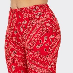 Bandana and paisley print soft skinny flared legging bell bottom pants. Elastic waistband. Everybody loves a comfy pair of skinny pants, so cute, goes with almost anything. Brushed fabric.