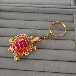 Gold tone Turtle With Colorful Shell Keychain/charm