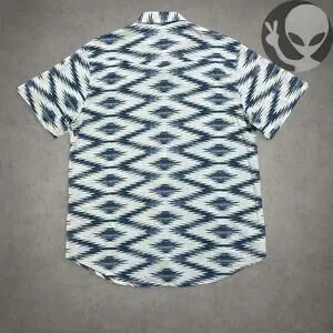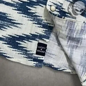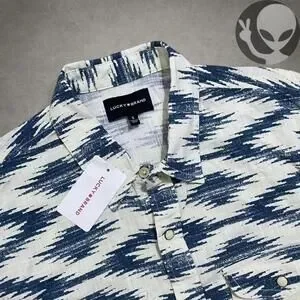 NWT Lucky Brand Men's Button Up Shirt Small Ivory Blue Tribal Preppy Summer