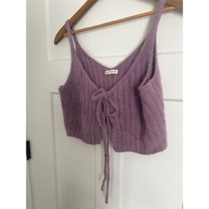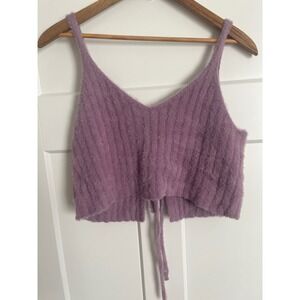 LA Hearts Purple Fuzzy Knit Tie Front Crop Top Ribbed Eyelash Sweater Tank Small