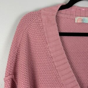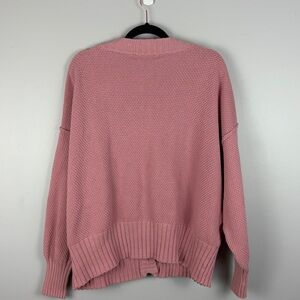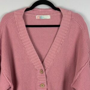 Free People Beach Cotton Knit Cardigan Sweater Pink Oversized Large Tiny Flaw