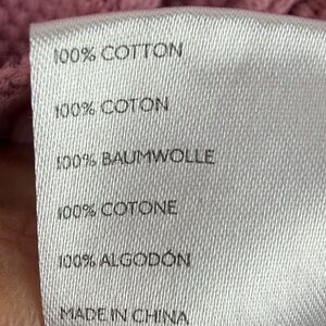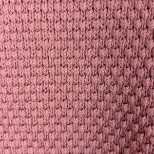 This soft dusty-rose pink knit features a relaxed, slightly oversized fit with drop shoulders and chunky ribbed trim. Made from 100% cotton, it’s breathable yet substantial — perfect for layering year-round.