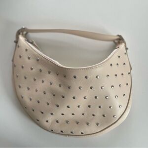 Chic cream shoulder bag by Madewell. Features eye-catching silver studs. Ideal for versatile styling.