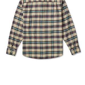 - Description: The Men's Calico Flannel by Seager Co. is crafted from 100% cotton and showcases a cream plaid pattern ideal for everyday wear. Designed with long sleeves and a relaxed fit, this shirt emphasizes comfort with its peached finish for unmatched softness. It features a button closure and dual chest pockets, reinforced with workwear-grade buttons and herringbone twill backing for enduring durability. Easy to care for, it is machine washable and can be tumble dried for convenience.