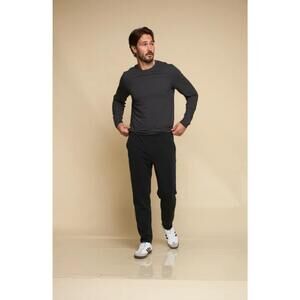 - Description: Discover the North Shore Long Sleeve Crew from FUNDAMENTAL COAST, a staple for modern, minimalist style. Crafted from a super-soft heathered blend of 91% Polyester and 9% Spandex, this lightweight and breathable tee is perfect for layering. It features long sleeves, a classic crew neckline, and a straight hem for a sleek fit. Closure: Pull on. Care: Hand wash and line dry. Presented in jet black for versatile styling.