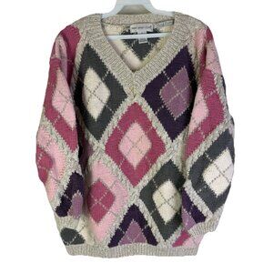 Vintage 80s Streetwear Hand Knit Diamond Argyle Rainbow Sweater