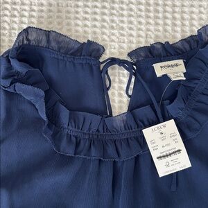 NWT J Crew Navy Blue Ruffle crinkle sleeveless blouse top chiffon size XS