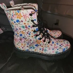 Floral Combat Boots with Black Soles