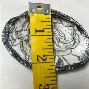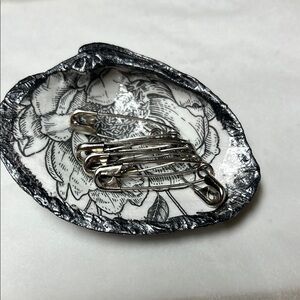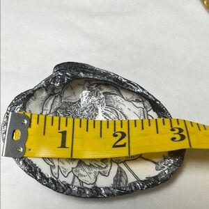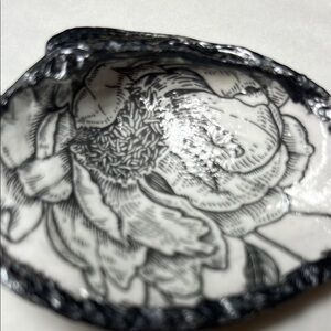 Handcrafted Black , White , Floral , Gunmetal Elegant shell dish . Perfect for decor or jewelry storage.